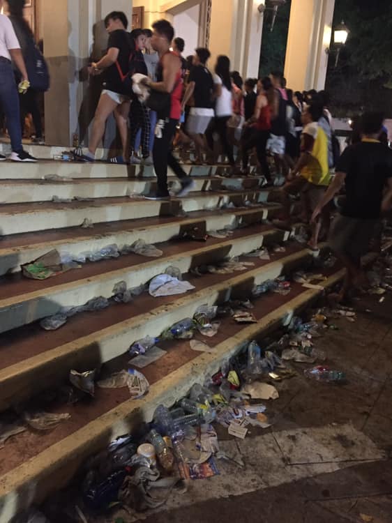 Isang kabataan nadismaya sa nakita Nang gawing malaking basurahan simbahan nila Ng mga nag-visita iglesia na walang pakundangan Nilapastangan at sinalaula tahanan ng Diyos.