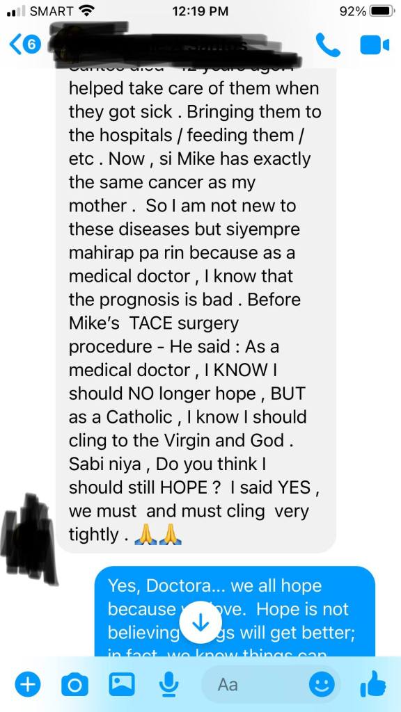 Four weeks ago, a former parishioner had asked me for prayers for her husband with liver cancer. Both are medical doctors; in fact, it was her husband who had actually diagnosed himself while going through radiological lab exam.