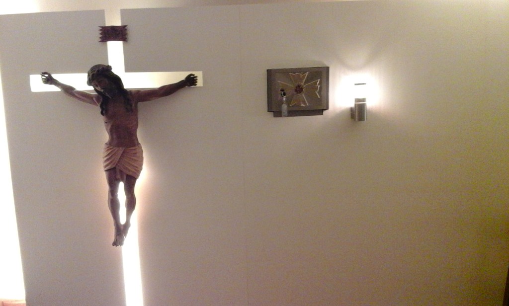 Crucifixion at the altar of the Betania Retreat House, Tagaytay. Photo by author, 2017.
