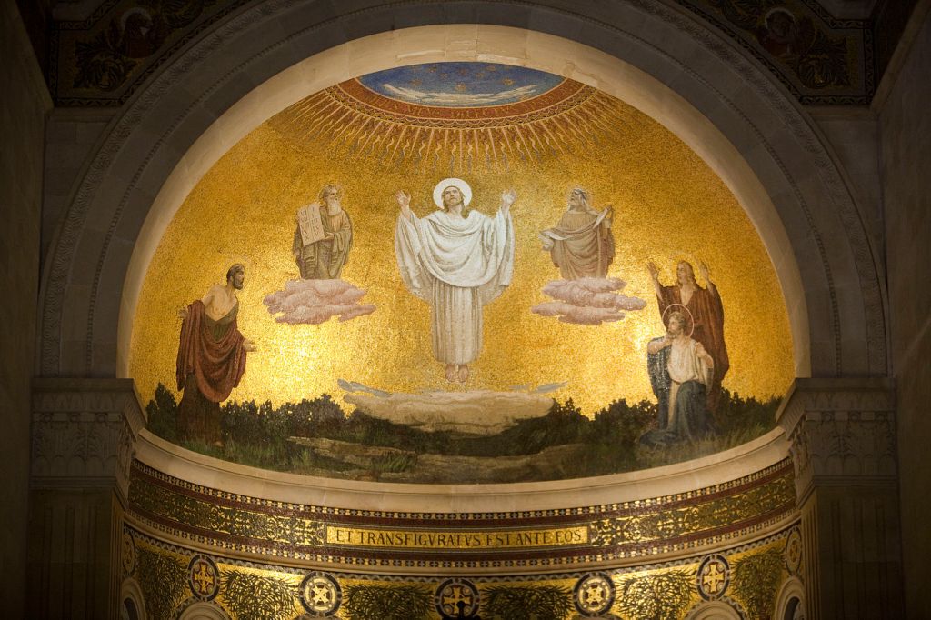 Photo of the mosaic inside the Basilica of the Transfiguration on Mt. Tabor, Israel (from commons.wikimedia.org).