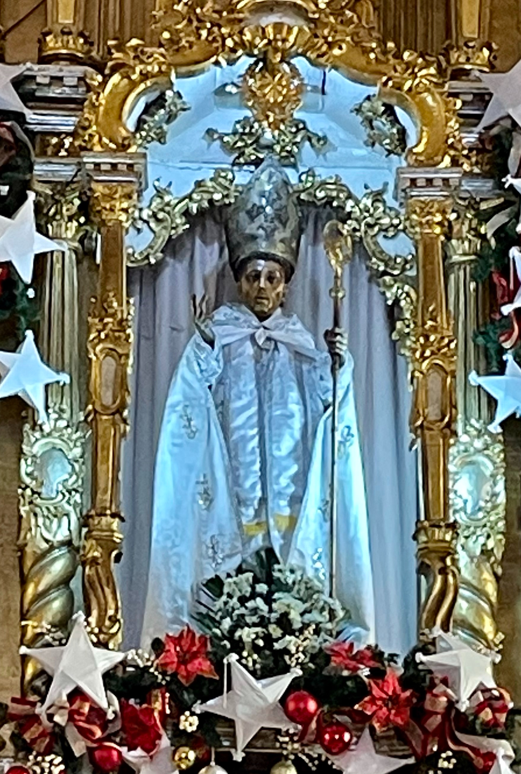 At the left side of the nave is displayed prominently the original cross used in the church by the Jesuits who administered the parish from 1616 to 1679. Above that is a wood carving of Santiago de Compostela or St. James the Great, patron of Spain and elder brother of St. John the Beloved, the patron of my parish for nine years and seven months. The parish of Baras was originally dedicated to him. Why they changed it to St. Joseph, nobody could tell us.