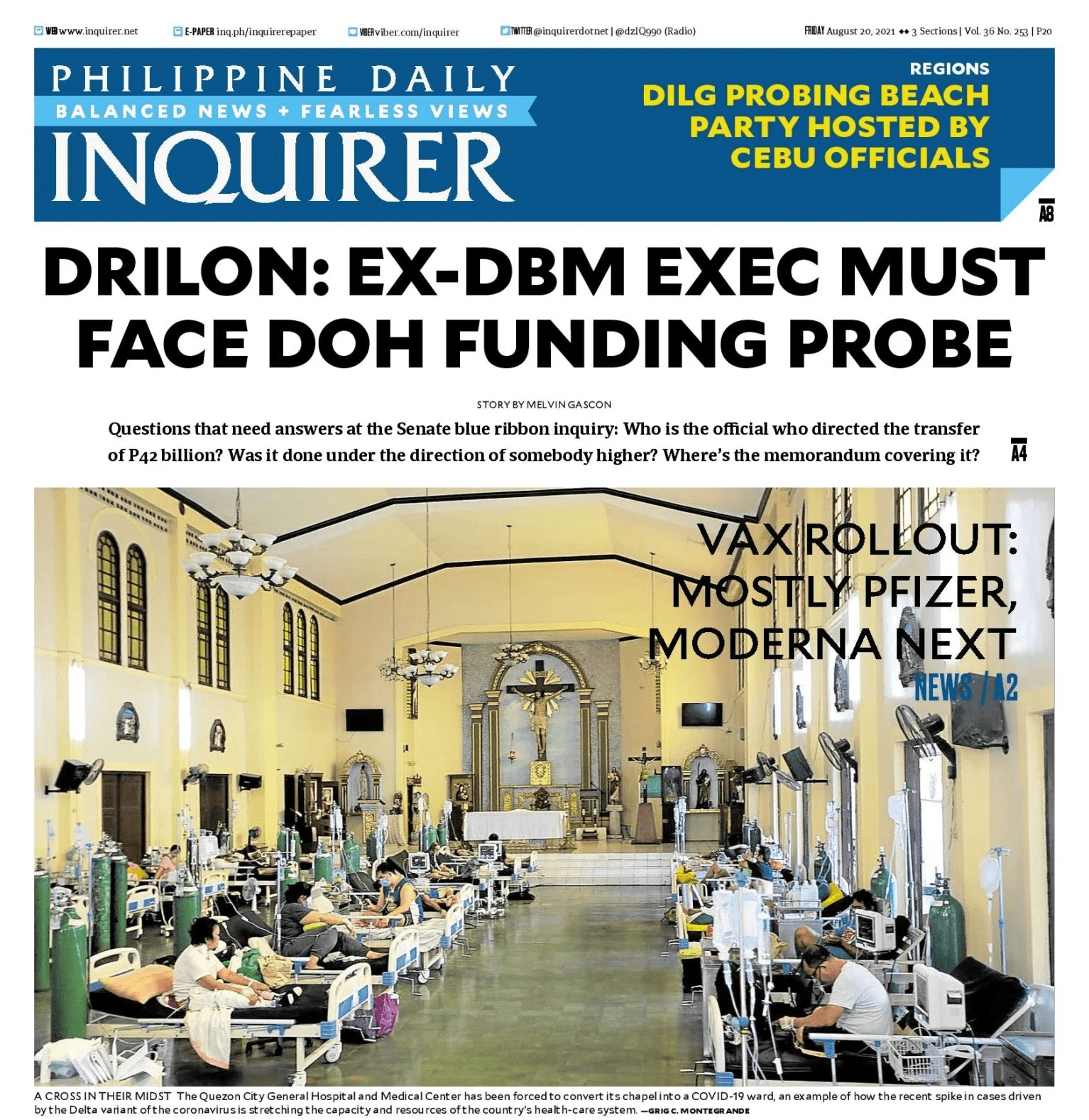 Inquirer’s Friday front page tells us in essence the message of this Sunday’s Gospel – “Lord, to whom shall we go?” in this time of crisis. Photo from inquirer.net.