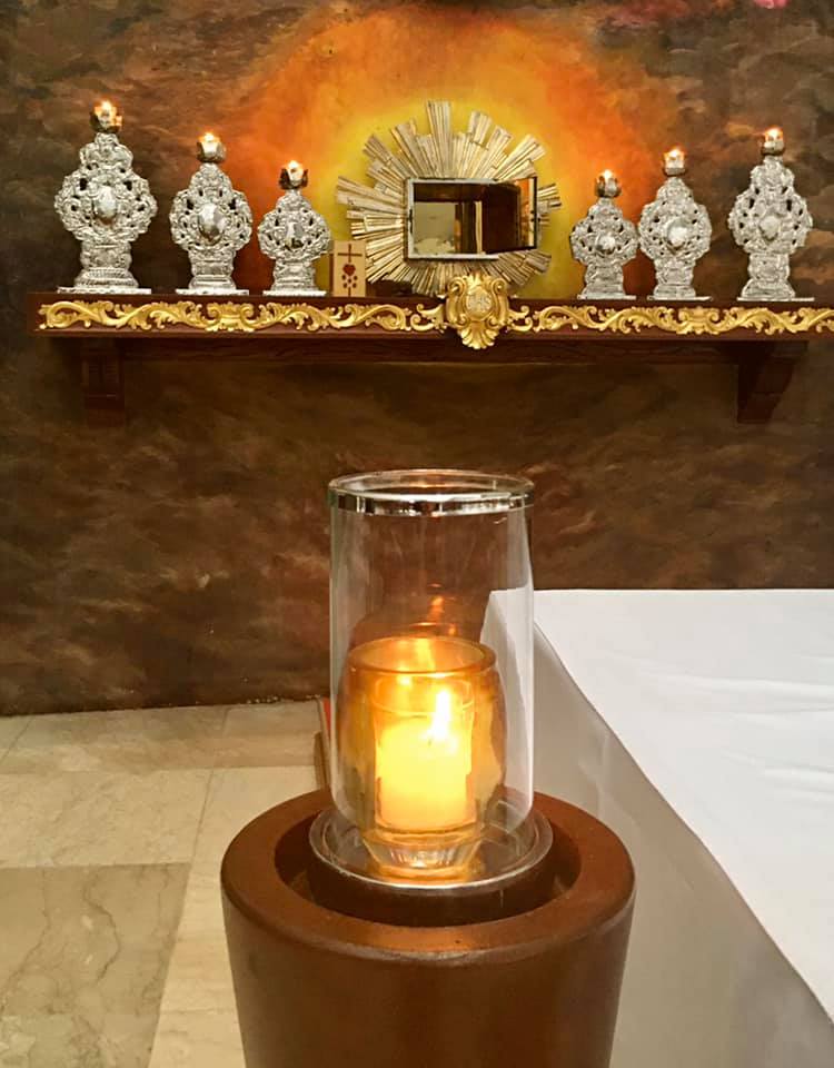 Larawan kuha ng may-akda, tabernakulo na walang laman bago magsimula Misa ng Huwebes Santo, 2020.