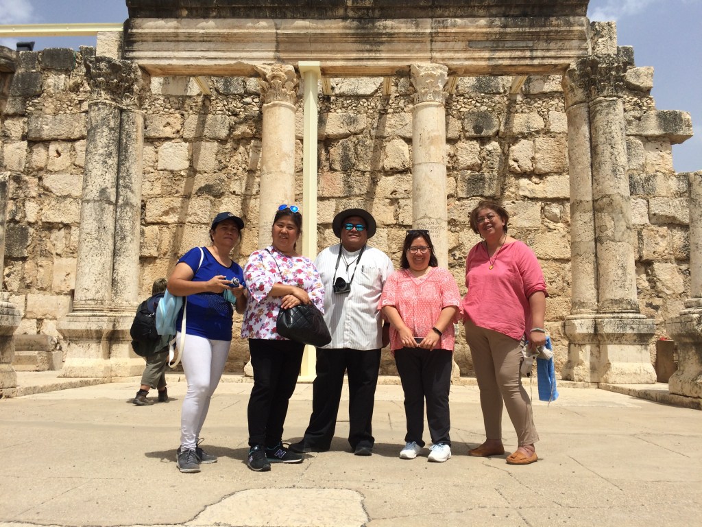 Photo by author with friends at ruins of the synagogue at Capernaum, 2017.